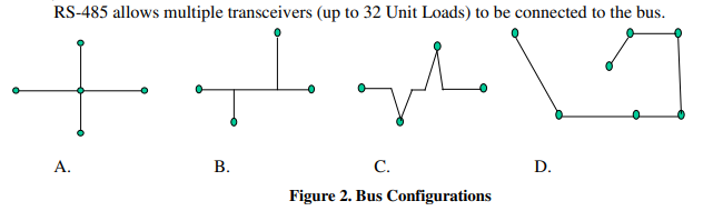 RS-485是一種雙向半雙工傳輸系統(tǒng),即數(shù)據(jù)可以在兩個(gè)方向上傳輸,但一次只能在一個(gè)方向上。RS-485標(biāo)準(zhǔn)要求系統(tǒng)允許多達(dá)32個(gè)單元負(fù)載連接到總線。一些可用的收發(fā)器,具有分?jǐn)?shù)負(fù)載,以允許總線上有更多節(jié)點(diǎn)。此類收發(fā)器的設(shè)計(jì)旨在避免傳統(tǒng)分?jǐn)?shù)負(fù)載收發(fā)器的問題,例如速度有限和輸入差減小。