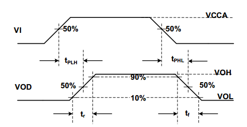 tPHL 接收使能傳播延遲時(shí)間,輸出高電平至低電平時(shí)間