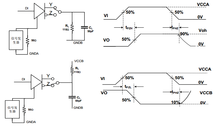 tPLH 接收關(guān)閉使能傳播延遲,輸出低電平至高電平時(shí)間